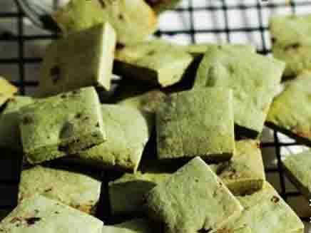 2.米粉和抹茶粉過篩,倒入黃油中用刮刀拌勻,再加入紅豆用手和面,讓紅豆和面團很好的粘在一起。